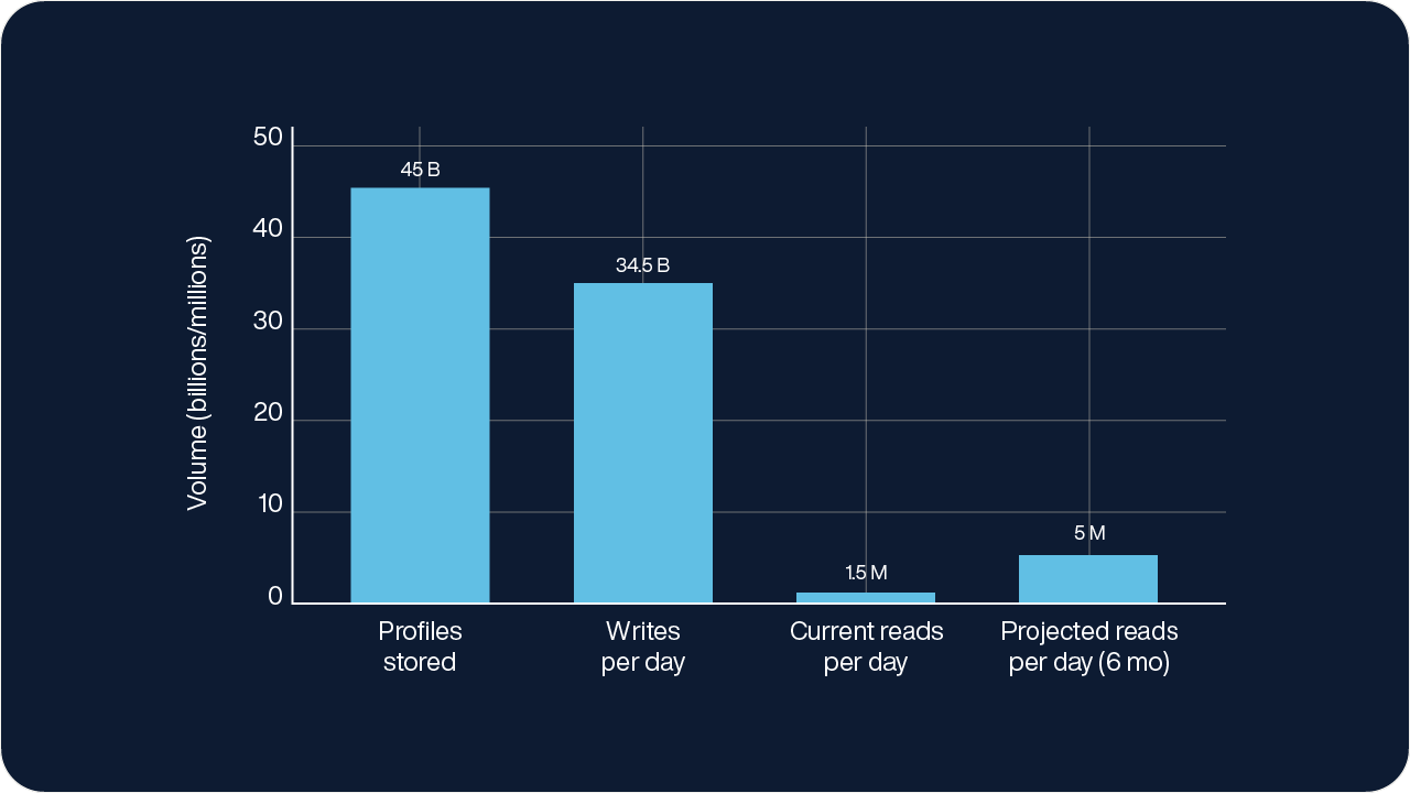 One of Adobe’s busiest edge regions currently holds around 45 billion profiles, and demand is expected to grow significantly in the year ahead. Scaling an architecture with indexes in-memory to meet that demand would mean more RAM, more nodes, and significantly higher cloud costs. It became clear that a different approach was needed.